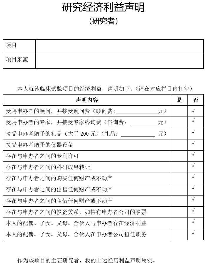 研究经济利益声明
